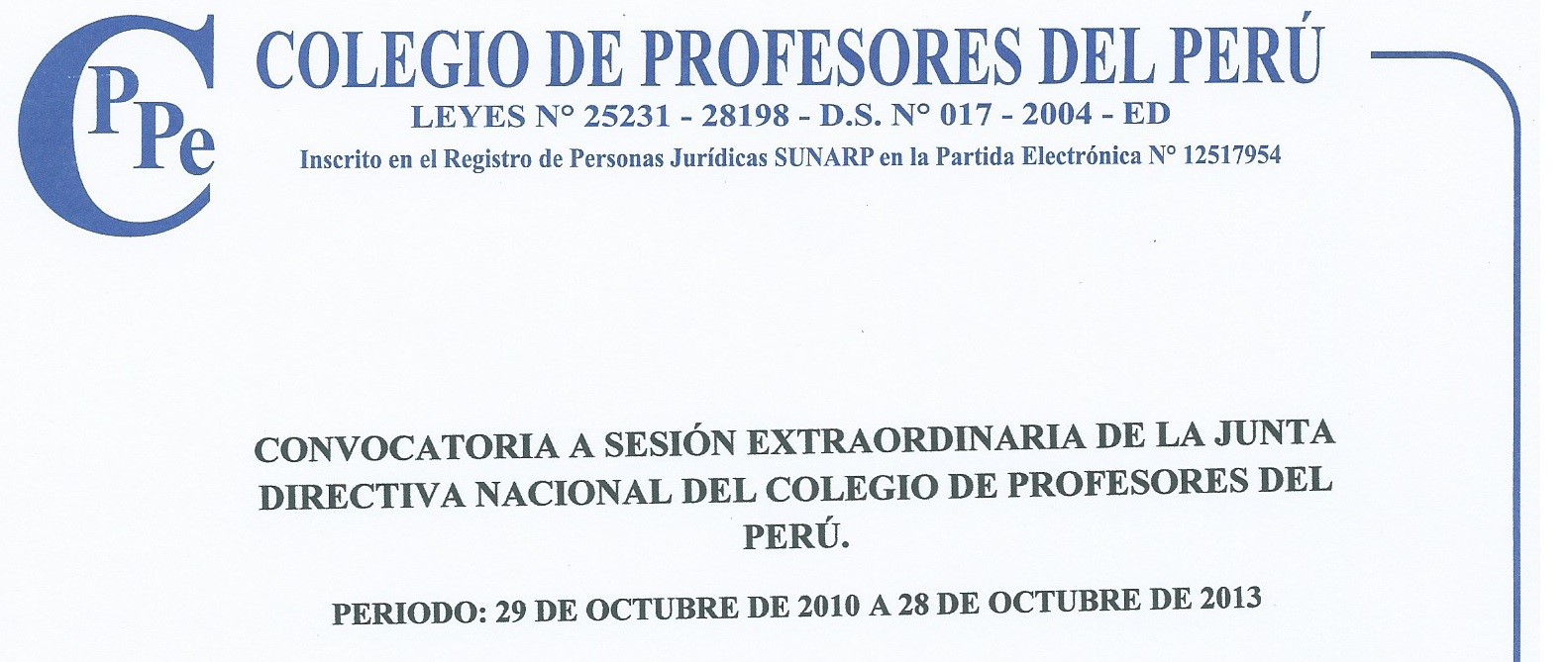 CONVOCATORIA A SESIÓN EXTRAORDINARIA DE LA JUNTA DIRECTIVA NACIONAL DEL COLEGIO DE PROFESORES DEL PERÚ.