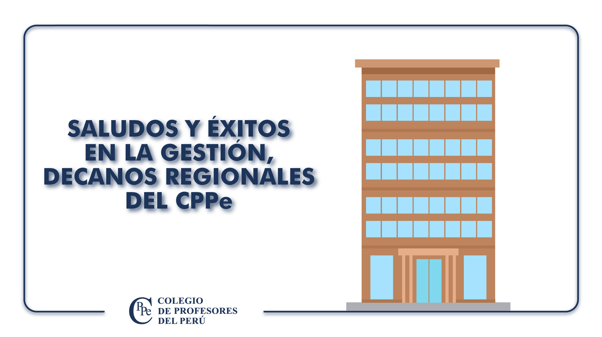 A nombre de la Junta Directiva Nacional del Colegio de Profesores del Perú, periodo 2020 – 2023, les hago llegar mi saludo y felicitación, por haber asumido a partir de hoy 16 de junio, la delicada responsabilidad de conducir nuestra Orden Profesional en la región que representa.